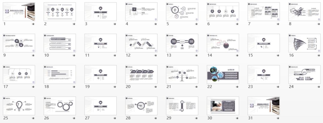此外,适合学生答辩的简约PPT占了多数,所以看起来都差不多,且对于非常实用的PPT我们会多次推送。