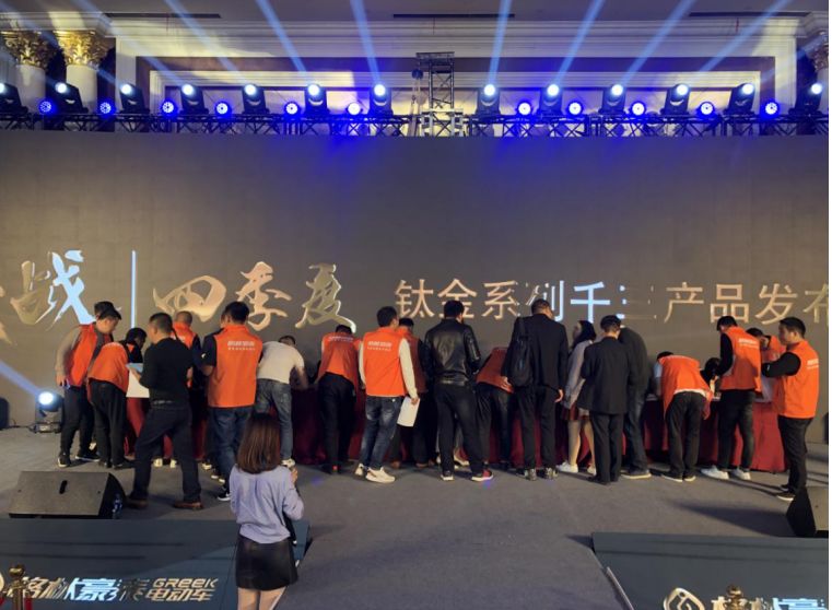 在随后的新品启动仪式上,任达华与格林豪泰全体高管一起,共同揭开了本次发布会主角格林豪泰铂金系列、钛金系列新品的神秘面纱。同时,任达华还在现场为格林豪泰新品签名,助力全体格林豪泰经销商实现终端腾飞!
