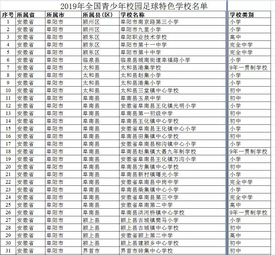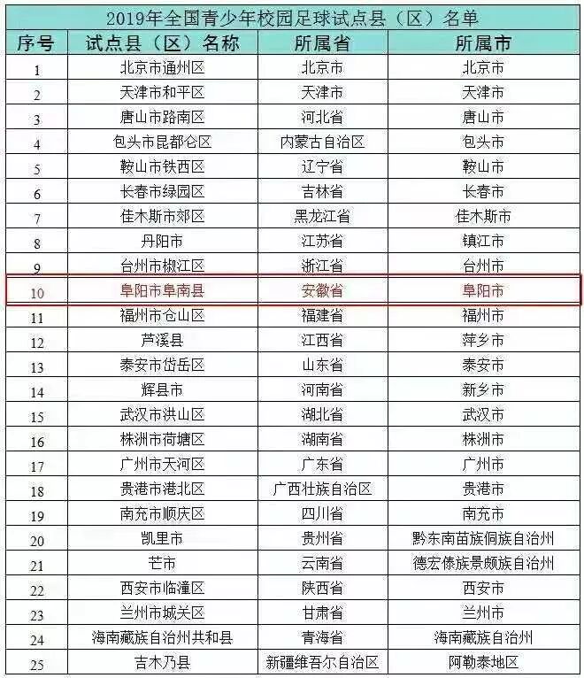 同时,阜南县入选全国青少年校园足球试点县(区),这也是今年全省唯一一个入选的县(区)。