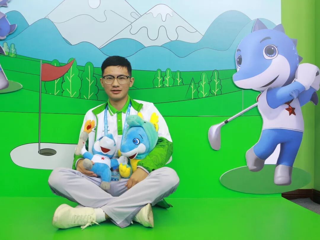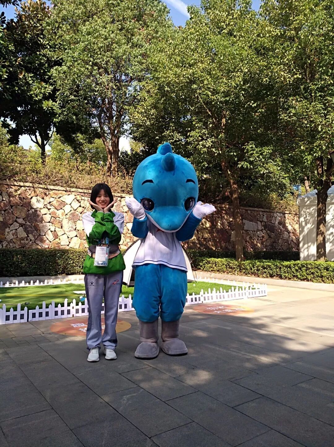 中华鲟被誉为“水中大熊猫”和“水中活化石”,物种稀有罕见、历史悠久,需要加大保护和宣传力度,充分体现军运会人文关怀和生态保护理念。中华鲟含“中华”二字,且主要生活在长江流域,表明东道主身份。吉祥物取名“兵兵(bingbing)”,有军人的意思,其阳光、自信的笑容和张开双臂、迈步向前的造型象征着新时代的中国愿以更加开放包容、热情好客的姿态与各国友人一道共享友谊、同筑和平。然而,我们武纺电院勤劳可爱的志愿者们,与兵兵同框,画面是如此的和谐。