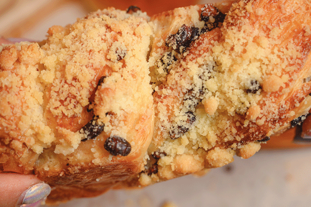 酸奶菠萝蜜有着“6块腹肌”,肚子里全是真材实料,自家酵母发酵的烘焙的面包包裹着新鲜菠萝和满满酸奶。表皮金黄酥脆,内部松软可口。实在难以抗拒。