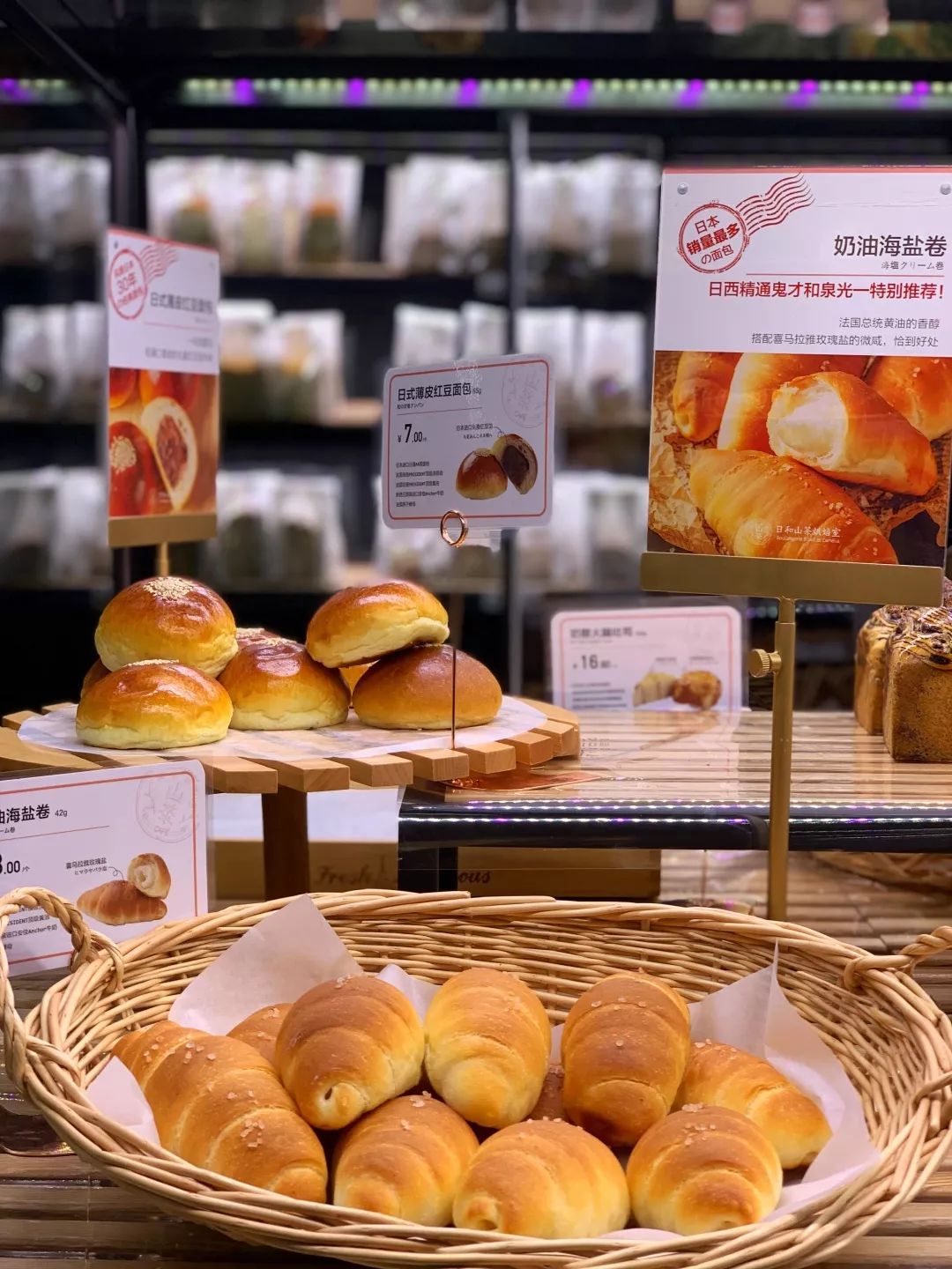 日式经典红豆包很有特色,采用自制天然酵母,日本日清山茶花面粉,法国总统淡奶油和总统黄油。红豆细腻,面包松软,美味为一天的好心情开了头。