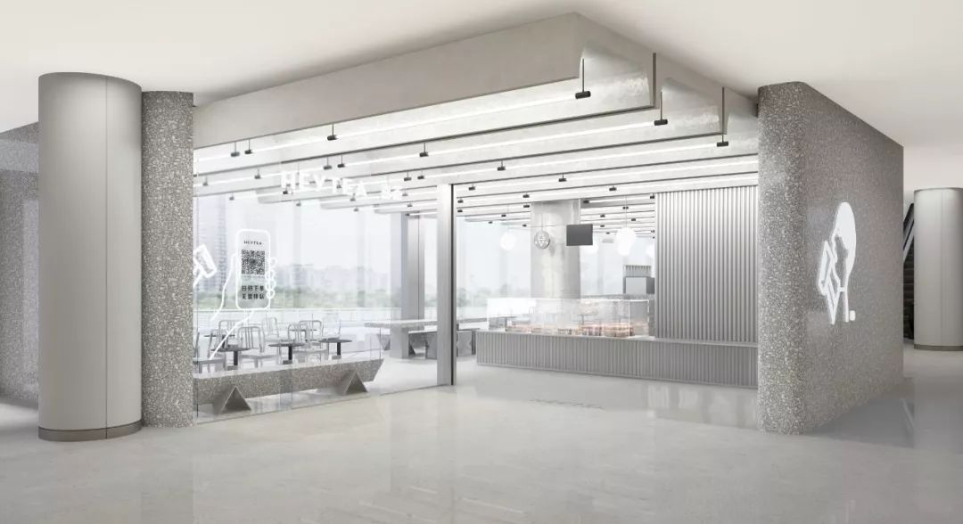 装修设计是喜茶一贯的简约风,几何状的艺术装置与悠悠绿植共同构建了一个融合现代禅意与本土风格的茶饮空间。