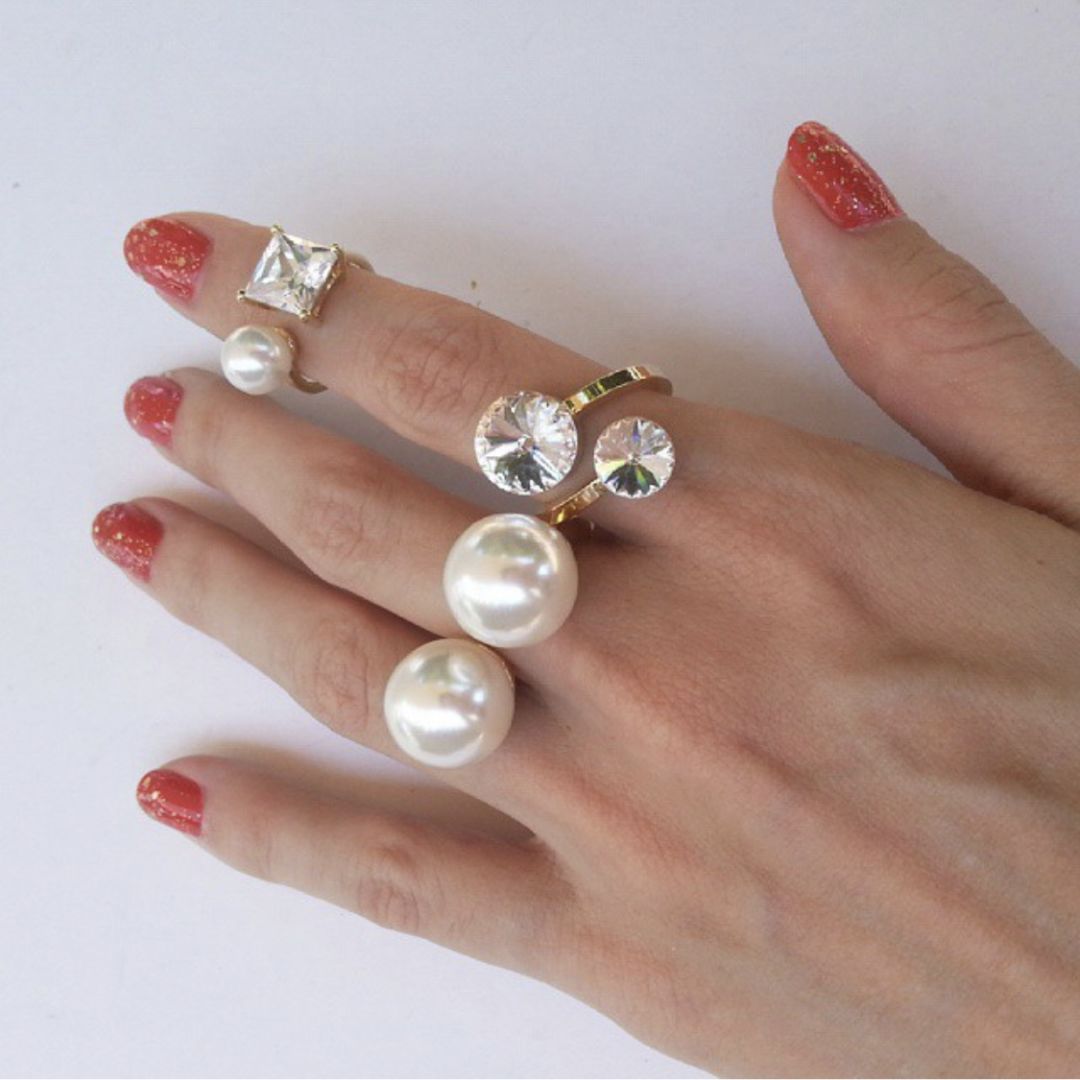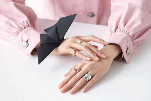 宝石款戒指给人一种雍容华贵气质,极易提升level,但在数量上的搭配上,建议5枚以内,因为宝石款通常覆盖面积较大。