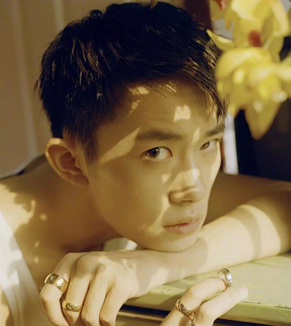 一件简单白色背心,穿在这个少年身上,刚刚好。温柔的阳光勾勒出他带有棱角的面庞,余晖洒落在指尖叠戴戒指上熠熠生辉。他用不同宽窄的黄金与白金戒指,mix叠戴出错落有致的不羁感,别具一格。
