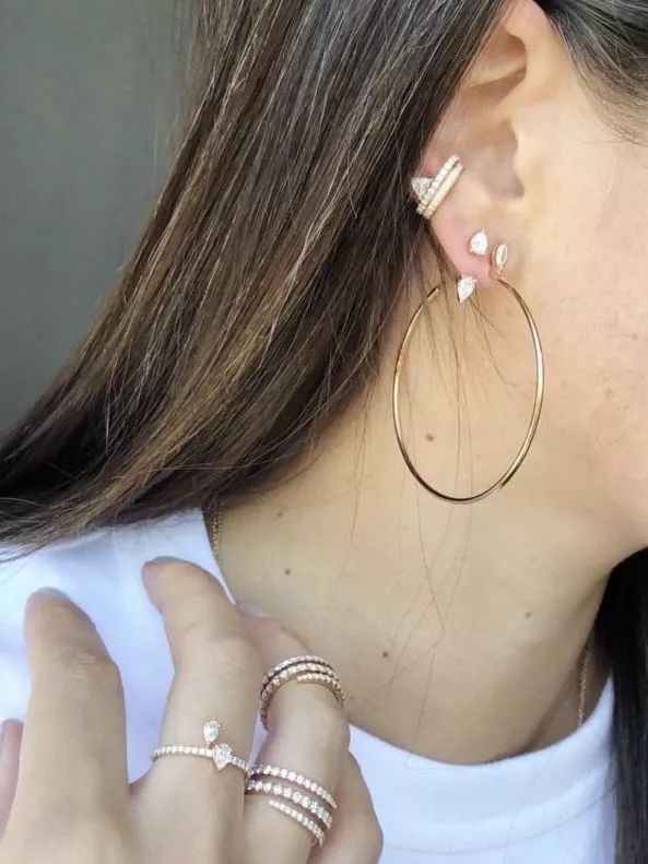 同样的几何元素戒指的叠戴是最简单的统一风格的方法,怎么戴都不会觉得突兀。