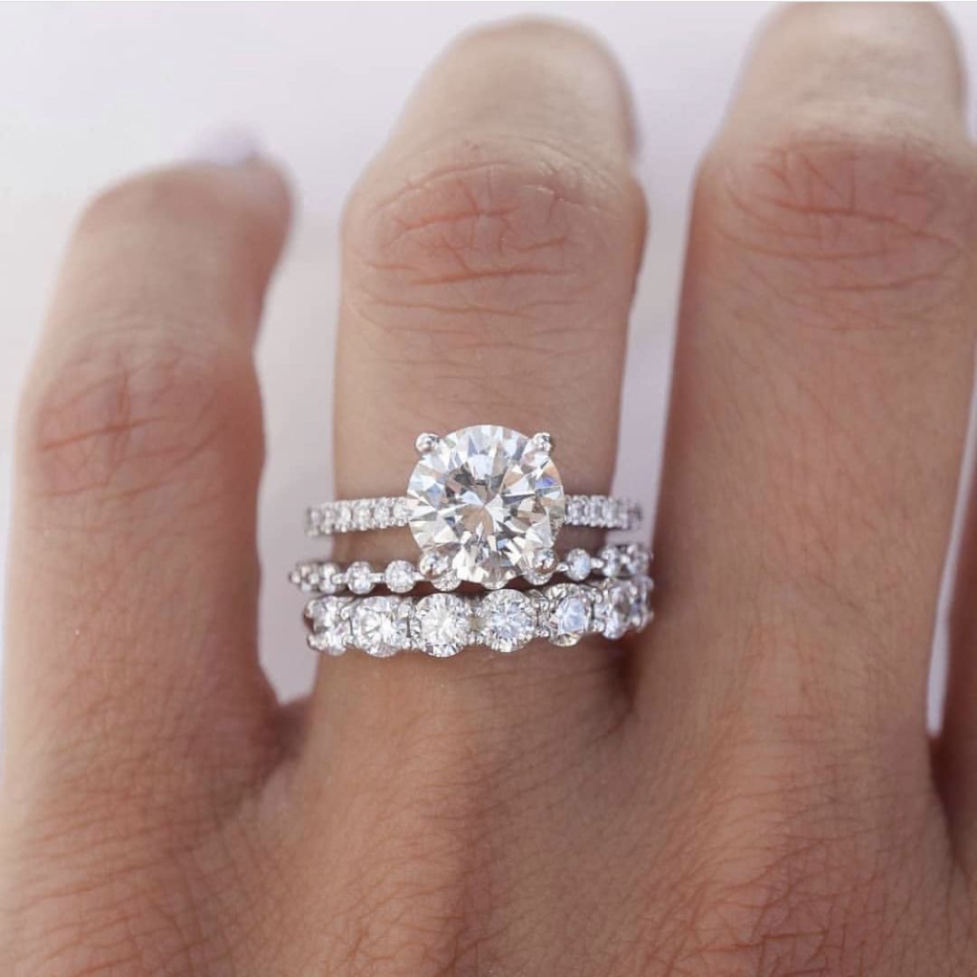 现在也很流行将细一些的戒指与钻戒叠带,将婚戒衬托的更加闪耀。