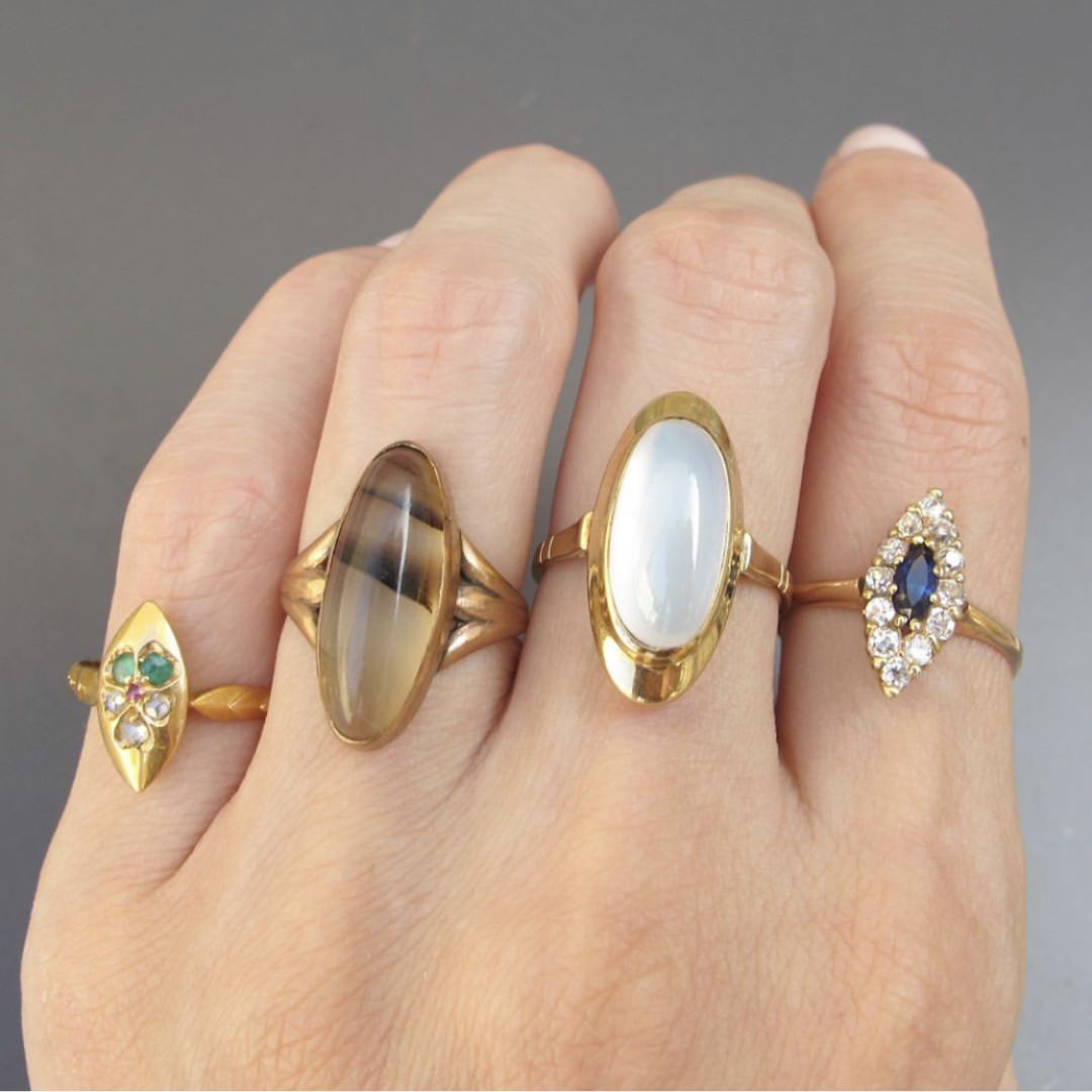 宗其要义,就是用一只醒目的cocktail ring(鸡尾酒戒)搭配一组基本款素戒,有重点,有主次。