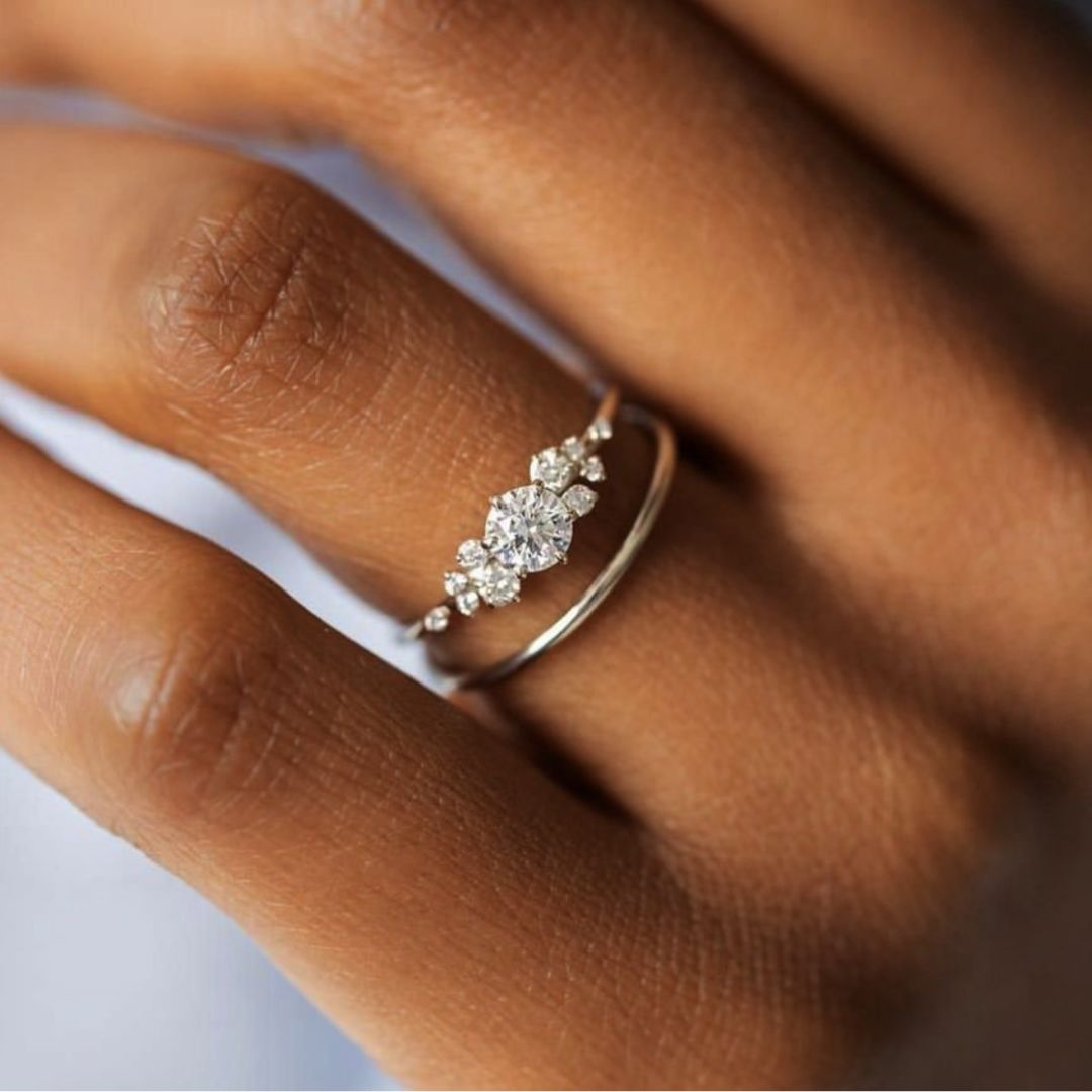 只要加上一个钻戒,就能让其他几只超基本款超普通的细指环有不一样的feel~