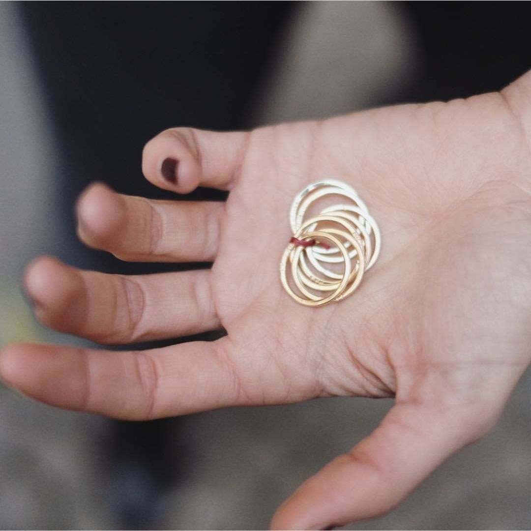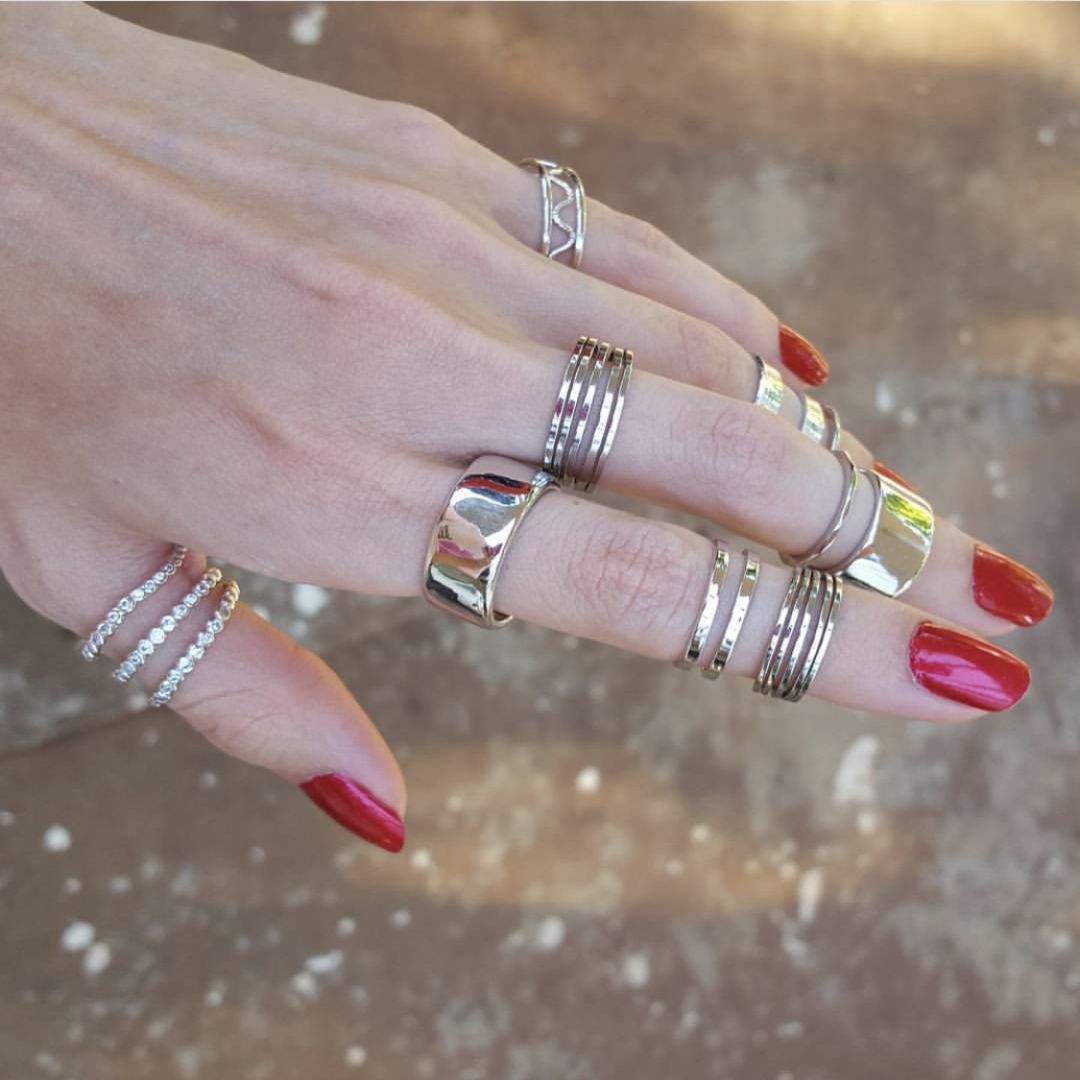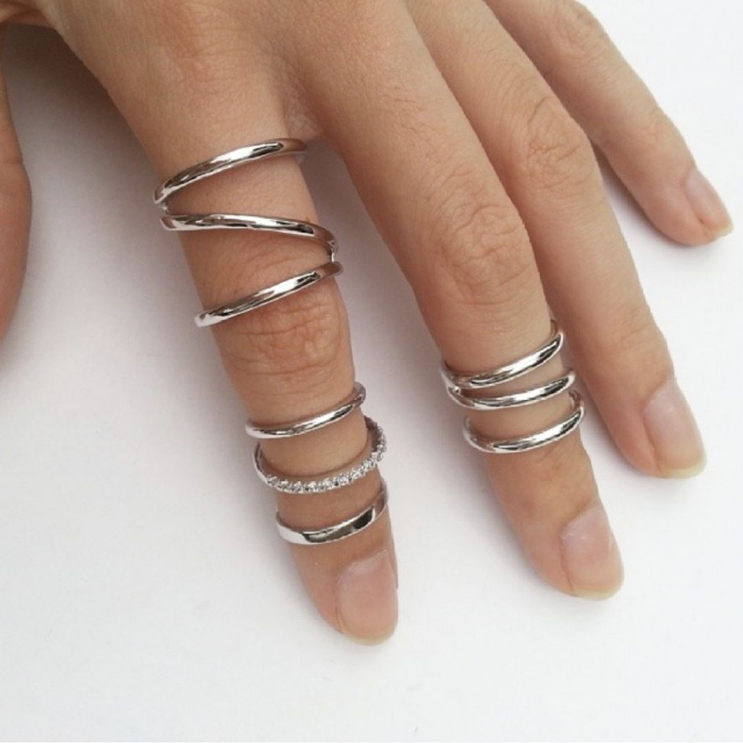层层的细窄戒指同样可以装点你职业女性的魅力。当宽窄不一的戒指活跃在手指上,你不觉得在敲击键盘时的心情也变好了吗?