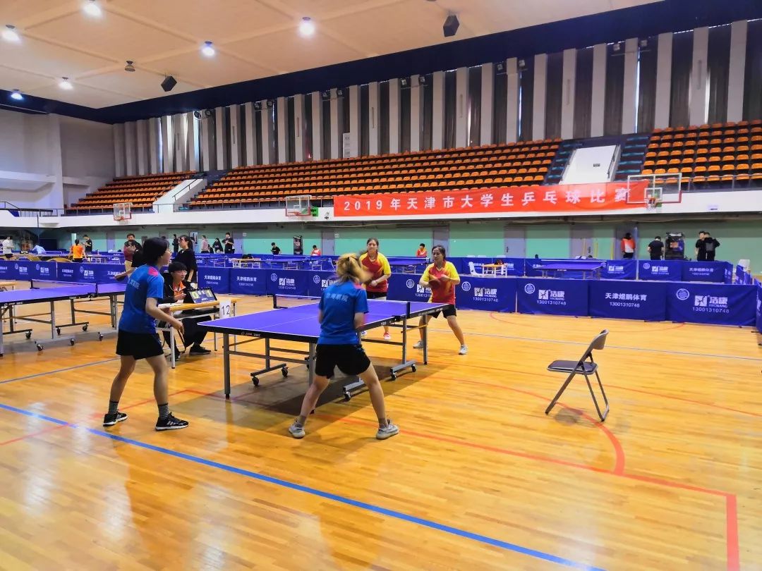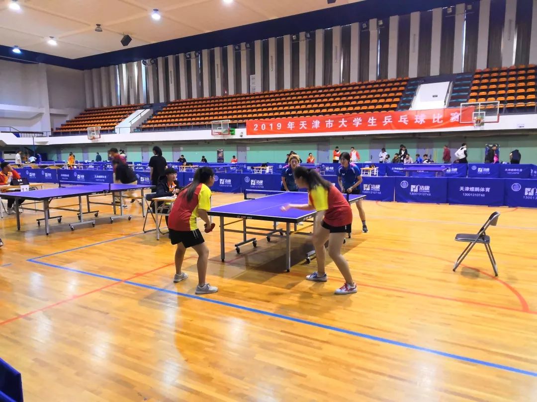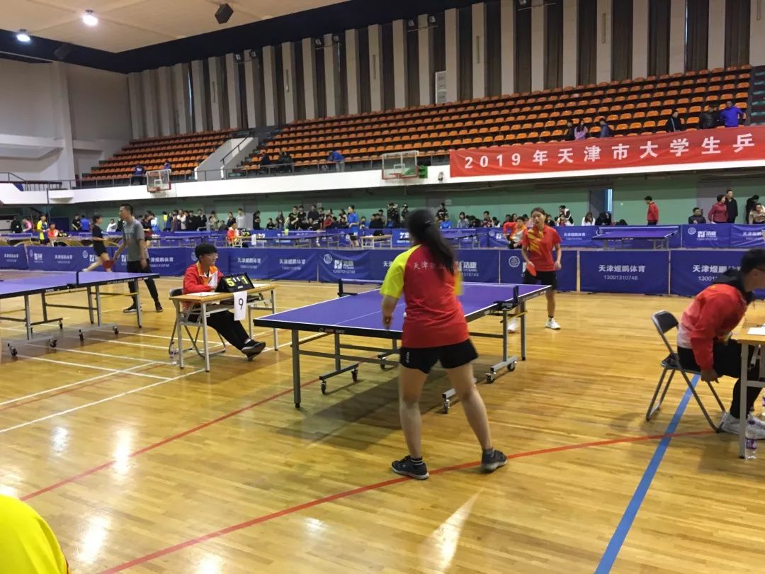 在今年天津市大学生乒乓球比赛上,同学们不畏强手、顽强拼搏,一个个回合、一场场厮杀,扣杀有力、救球有方,掀起一个一个高潮,赢得一阵一阵喝彩。一路奋战,披荆斩棘,夺取了女子团体冠军,女子双打第二名,男子单打中冠军,男子双打第二名,男子团体第三名的好成绩。充分体现了我校乒乓球队顽强拼搏和永不放弃的精神。