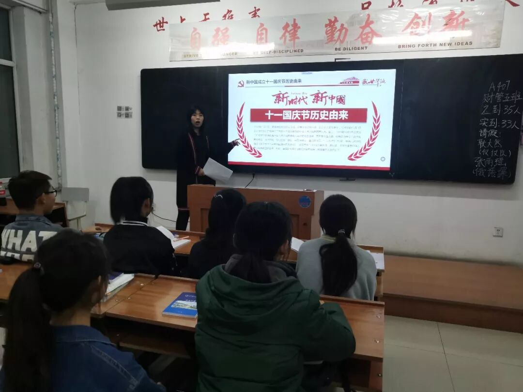 三名同学认真对待,集中备课,讨论课题,并决定围绕新中国成立70周年讲解中华民族伟大复兴、以爱国主义为核心的不忘初心,牢记使命与新时代的奉献精神三大内容开展授课。活动开始以来,三名同学设计多种教学方案,充分运用新媒体,在课堂上与19级同学积极互动,19级同学们十分珍惜本次学习机会,自觉遵守纪律,踊跃发言。活动开始以来,三名同学共为25个班级授课,他们慷慨激昂的发言激励同学们奋发向上,时刻提醒同学们们勤学善思,学有所成报效祖国。