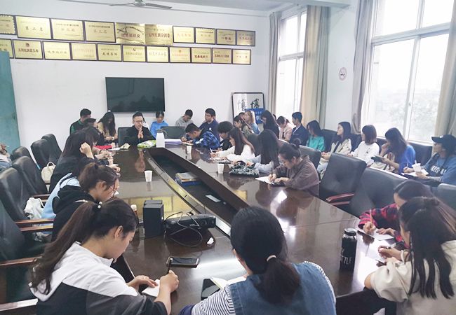 本网讯(文/图 赵诺)10月24日下午,政法学院于博雅楼会议室召开了学生干部例会,政法学院分团委代理书记,2016级辅导员甘洪金以及政法学院部分团学干部参加了本次例会。