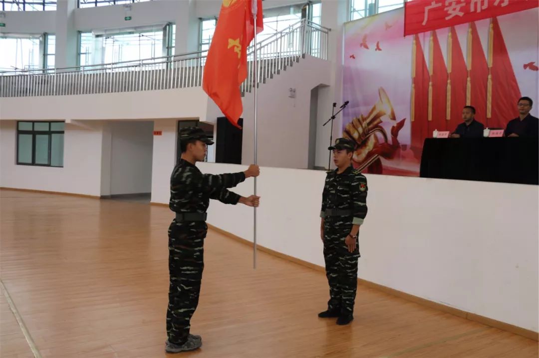 开营仪式第五项议程:全体参训同学宣誓并举行开训授旗仪式。