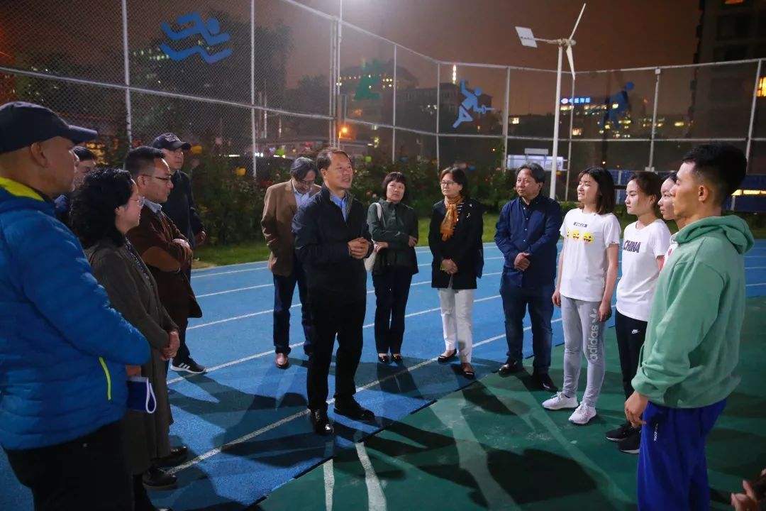 10月10日,赵旻书记、苗建华副书记及相关系部、职能部门领导等亲临奋小体育场看望和慰问我们,赞赏田径队的辛苦付出。赵书记说:“我们要培养德智体美劳全面发展的高层次人才,体育是非常重要的。这一次,田径队的人数虽然少,但带了一个好头,作为火种要带动学校的体育运动,把学校的群众体育运动搞起来。”俞峰院长也高度重视学校体育运动的发展,他经常强调良好的体魄对于音乐工作者的重要性。领导的鼓励带给我们巨大的力量,我们在心里说,一定要奋力拼搏,经受锻炼,赛出风格!