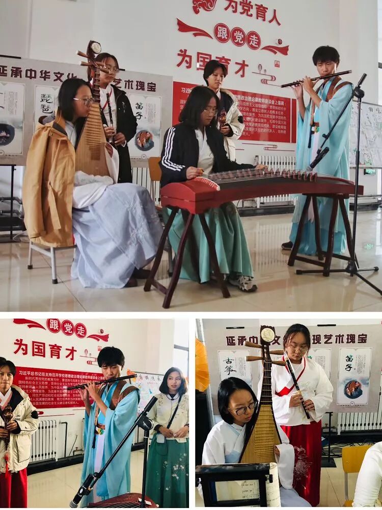 优美的旋律传来,古典乐器组的同学们用古典乐器演奏《青花瓷》、《云南民歌》、《青春舞曲》等现代曲目,古筝、琵琶、笛子与葫芦丝的完美搭配,纵贯古今,给大家带来了一场视听盛宴。