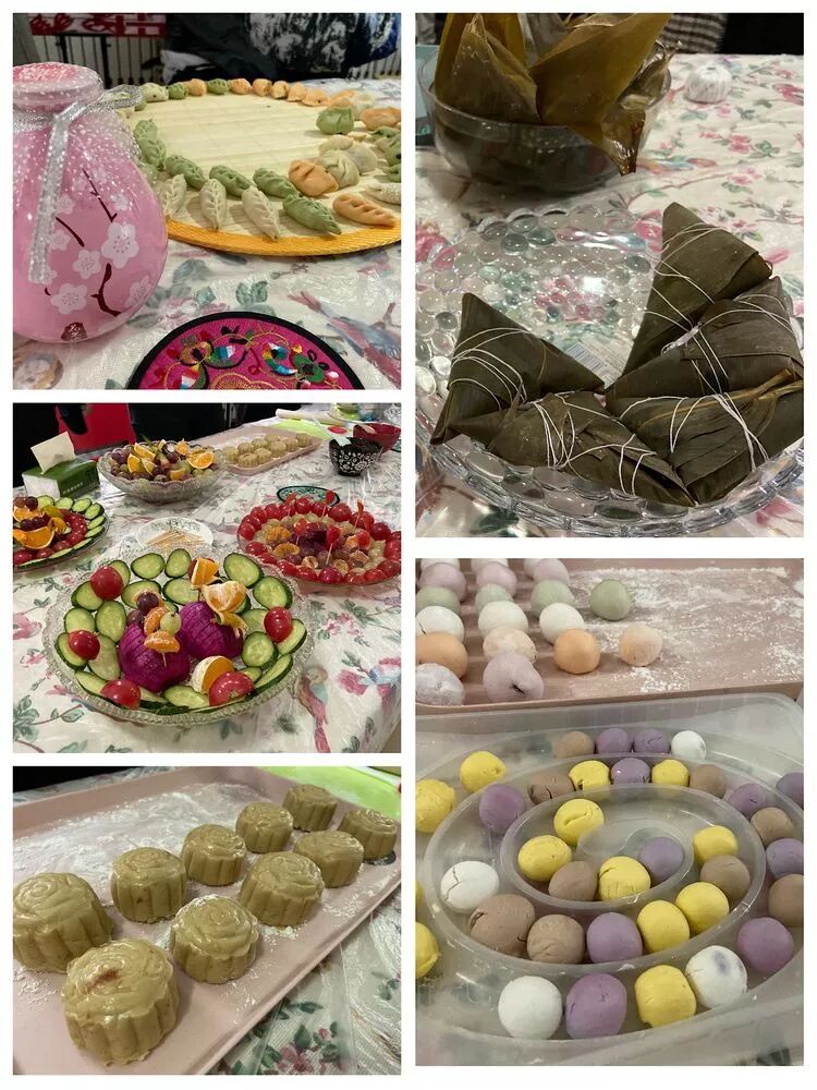 色彩斑斓的饺子,形状各异的汤圆,散发着枣泥和豆沙香的月饼以及包含着爱与智慧的粽子在同学们的手中随意切换。不管是制作美食的还是品尝美食的都享受着味蕾的变化与此刻的惬意。