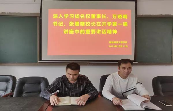 为深入学习杨名权董事长、万晓明书记、张晨曙校长的“新生第一课”教育精神,让团学干部坚定理想信念,明确学习目标,智能制造工程学院于10月11日在B104会议室组织了学习会议。
