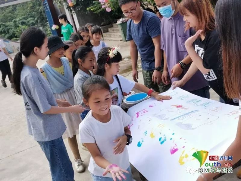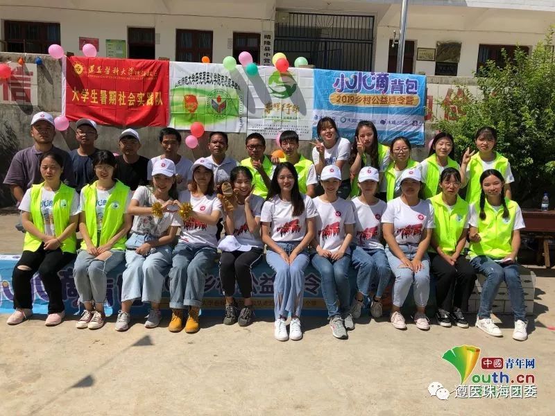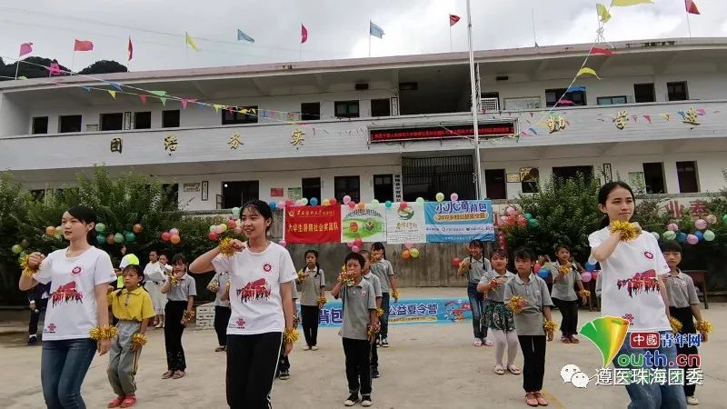 图为遵义医科大学珠海校区、山东师范大学志愿者和红寨小学老师在文艺汇演结束当天合影留念。中国青年网通讯员 梅凌霜 摄