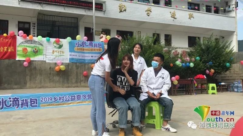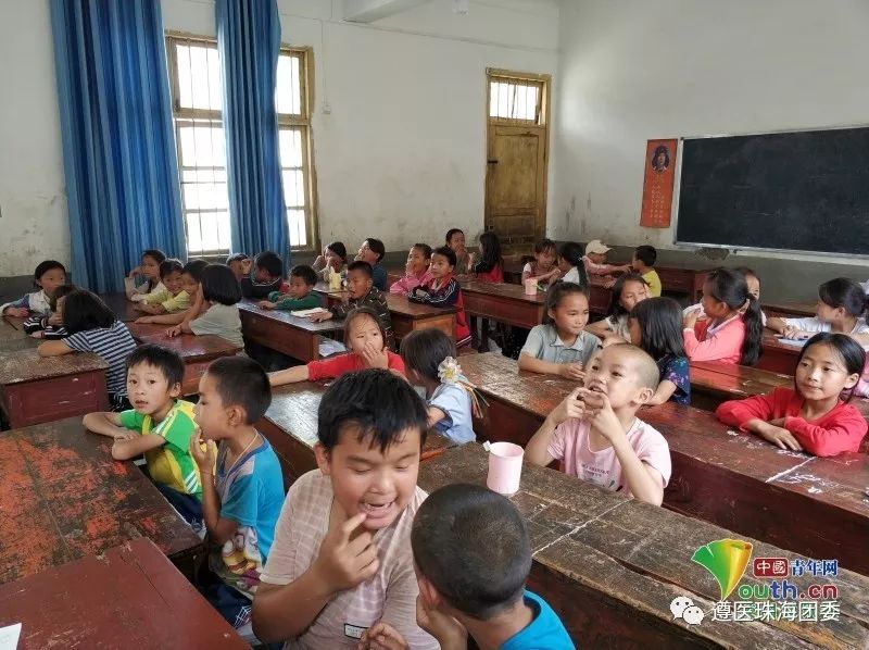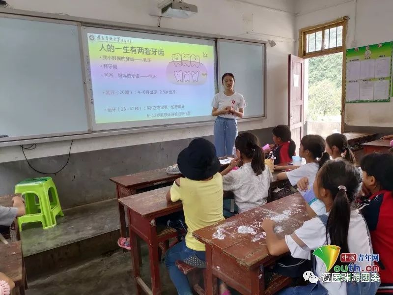 中国青年网晴隆9月9日电(通讯员秦丽 孙沙义)7月28日,遵义医科大学珠海校区“牙牙邮递员”爱心医疗服务队顺利与山东师范大学春晖社夏知支教队会合,来到了晴隆县中营镇红寨小学开展为期一周的支医支教活动。为了解深度贫困山区学生口腔卫生状况和口腔保健意识,志愿者对红寨小学各年级学生进行了不同主题口腔知识宣讲以及口腔检查联合刷牙指导,并为学生们对宣讲前后牙菌斑指示剂染色效果做出了对比。?