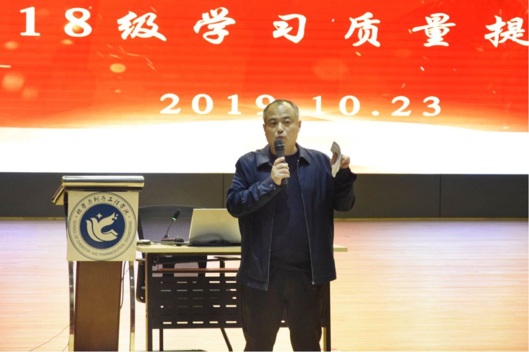 为增强我院本科生考研信心,提升考研竞争力,力求在2021年研究生考试中有所突破。10月23日晚6时我院于艺体中心召开17级考研动员大会。化工学院党委副书记董成稳、副院长蒋晓杰及考研辅导老师出席并作出动员讲话。大会由蒋晓杰主持,17级18级部分学生参加。