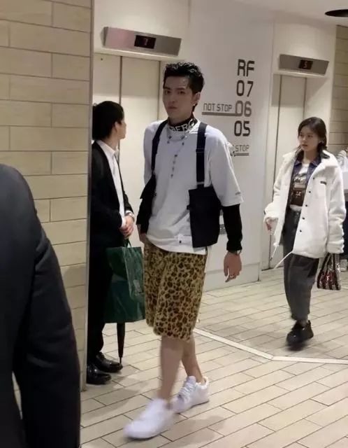 吴亦凡今天穿着一件非常酷的衬衫。白色t恤外面穿了一件黑色背心。它不是普通的。如果你看肩带,你会认为是安全带!腿上配有一条豹纹短裤。这些裤子甚至不能被女孩控制。他敢穿成这样,这使人们钦佩他。赵金迈紧紧地裹在身后,牛仔裤外套加厚运动服,看她和吴亦凡是两季。