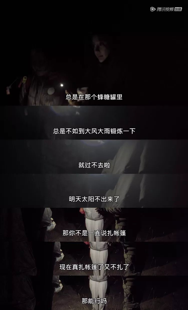 杨颖直接说:“我觉得我真的没有办法在这里扎帐篷。”