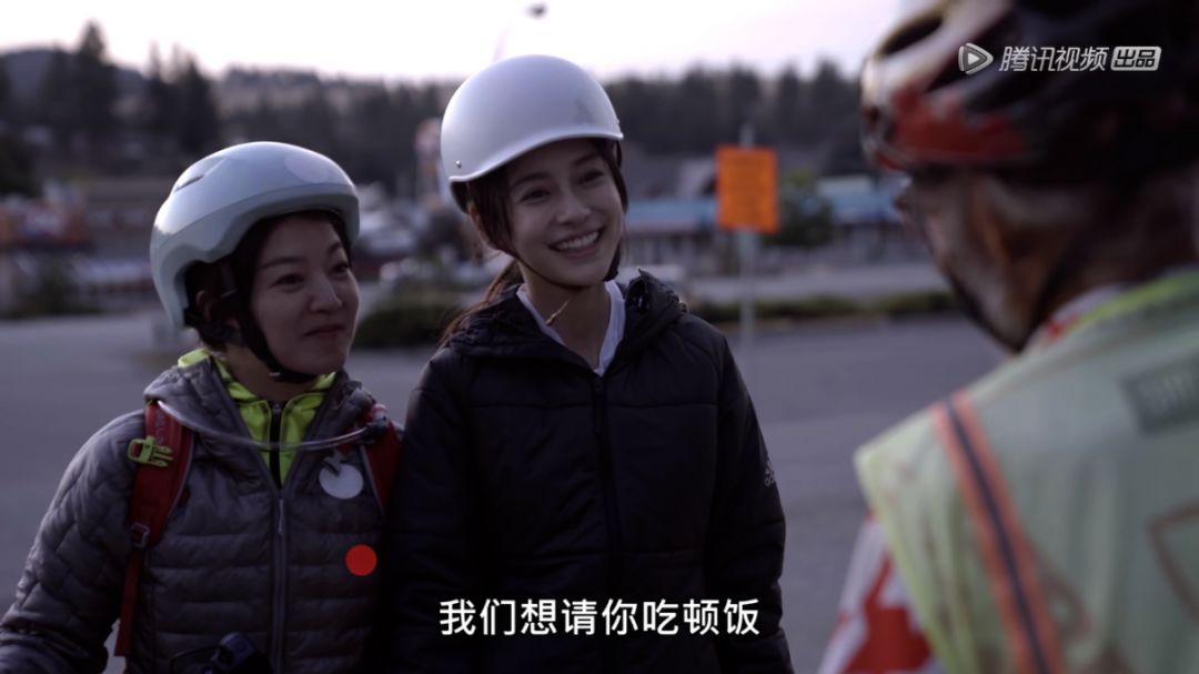 杨颖和阿雅的第一站,是加拿大之旅,和一位72岁的老爷爷一起骑行。