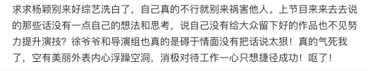 虽然杨颖走心的话说了不少,可是行为却打破节目的流程设定,因此被网友们吐槽。