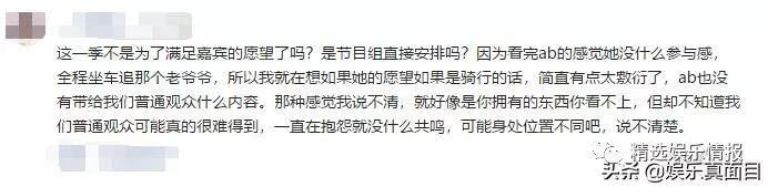 一部分网友觉得杨颖的参与感太低了,全程坐车追着老爷爷,有些太敷衍了,而且一直在抱怨,也没有带给普通观众什么内容。