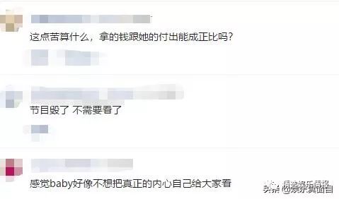 其中网友觉得这点苦算什么,杨颖拿的片酬能和自己的付出成正比吗,更有网友说,节目毁了,杨颖并不想把自己的内心给大家看。
