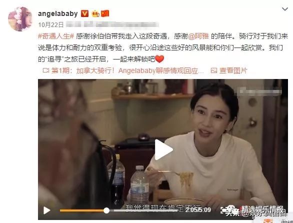 这不,杨颖又参加了真人秀《奇遇人生》,将和阿雅以及一位73岁的素人嘉宾骑行穿越加拿大,这个过程又累又苦,杨颖发微博宣传和感谢素人嘉宾徐伯伯、阿雅的陪伴之余,更是直言骑行对她们来说,是一项很大的考验,但是很开心沿途的风景能和他们一起分享。