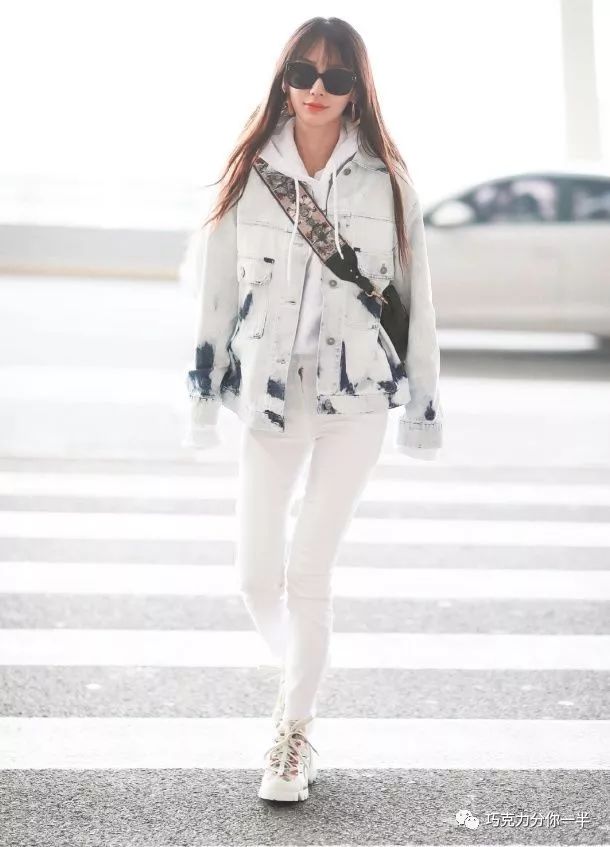 杨颖的其它私服造型也是很不错的,跟着小编继续看看她的私服造型吧,也是很不错的哦。这次杨颖穿着一件白色的牛仔外套,搭配一件白色的紧身裤,尽显干练魅力,衣服上的墨色涂鸦点亮了她的整个造型哦。