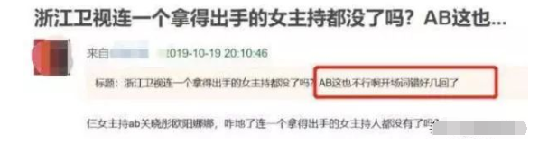 可是很多网友看到了,杨颖主持的时候频繁出错,就在网上议论纷纷。一个主持人念错赞助商的名字,这是很严重的失误了。后来还有网友吐槽"浙江卫视连一个拿得出手的女主持都没有了吗?杨颖这也不行啊,开场词错好几回了。"