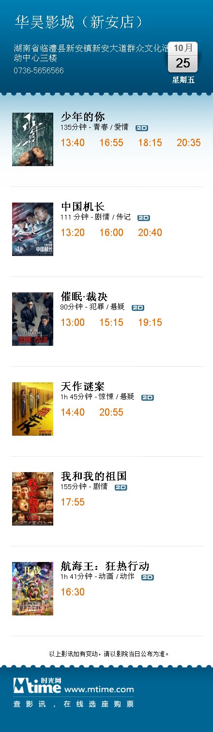 10月25号影讯,星空影城为您点播(温馨提示:网上购票淘票票更优惠哦