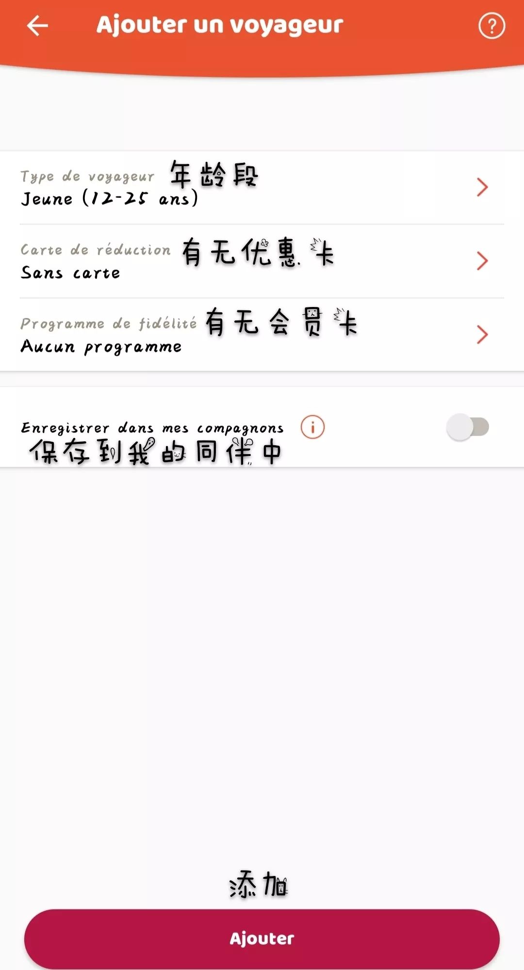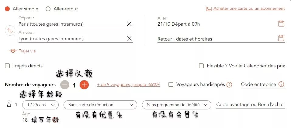 有无优惠卡:还没有办理且不想办理优惠卡的宝宝可以直接选择Sans carte de réduction,有卡的选择相应卡就可以啦!