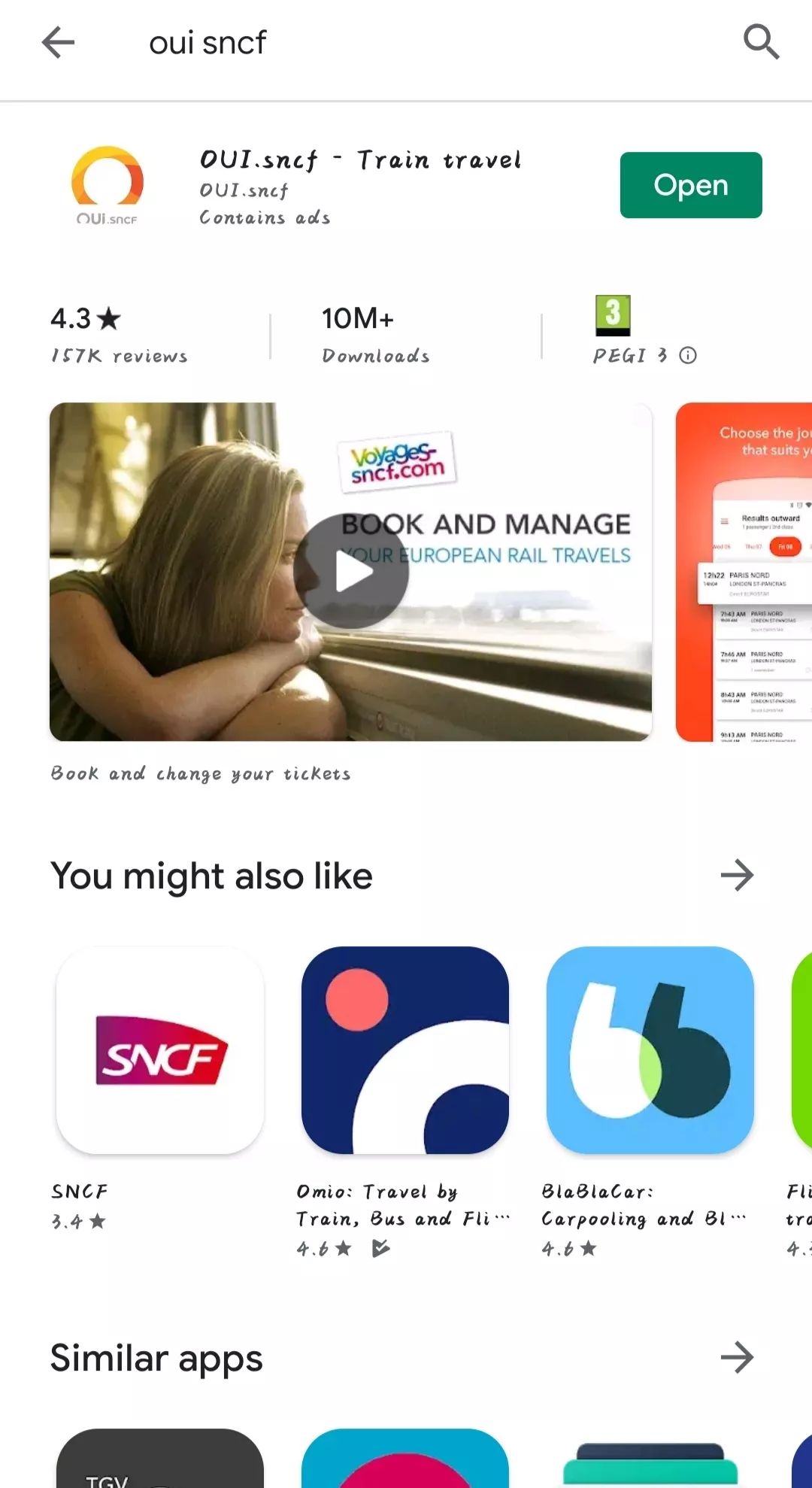 下面丹丹姐再给大家讲解一下,如何直接在手机上用APP购票。在应用商店里输入OUI SNCF,跳出来的第一个APP就是它啦!点它