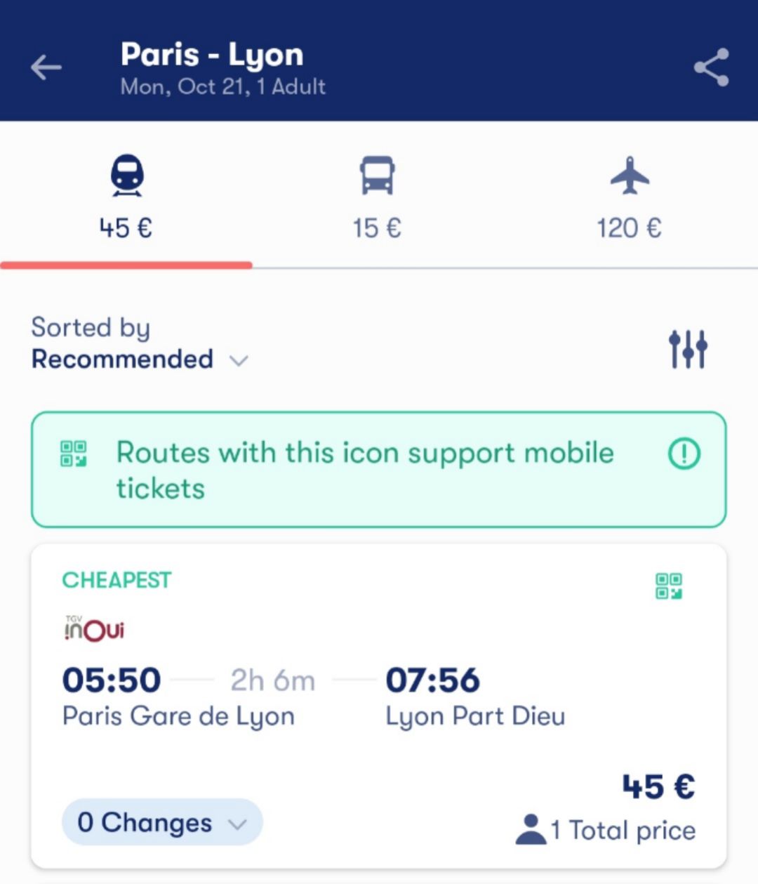 一般的出行方式无外乎火车/汽车/飞机这三种,当然了它们相对应的价格和所花费的时间也是大有不同的,就拿从巴黎到里昂举个栗子吧