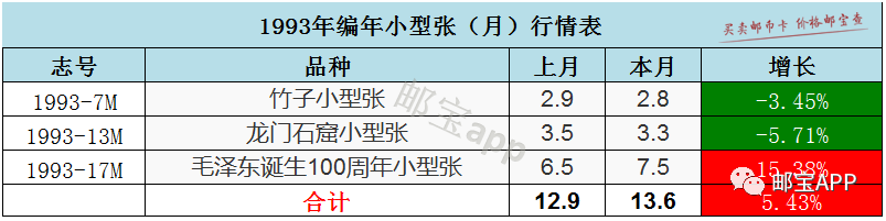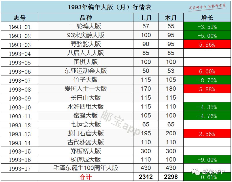 其他1993年大版价格变化请查看下表或前往邮宝APP查询。