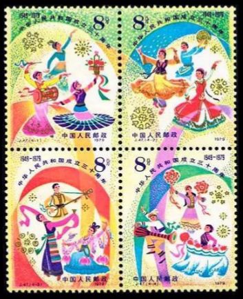 三十周年包含国旗、国徽、国歌等多项内容,其中第4组《欢庆》由4枚民族歌舞图案组成,动感强烈、欢庆气氛浓郁,最受广大人民群众所喜爱。
