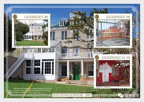 根西2019年7月24日发行《小国邮政联盟邮票:历史民居(海德威尔别墅)》