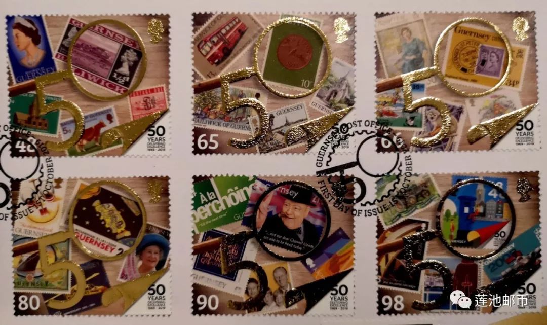 而到手后,才发现邮票上的金色50全部都是压凸烫金,相当惊艳: