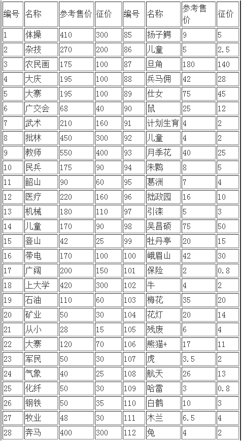 摘自:中国邮票投资交易网 涉及价格仅供参考