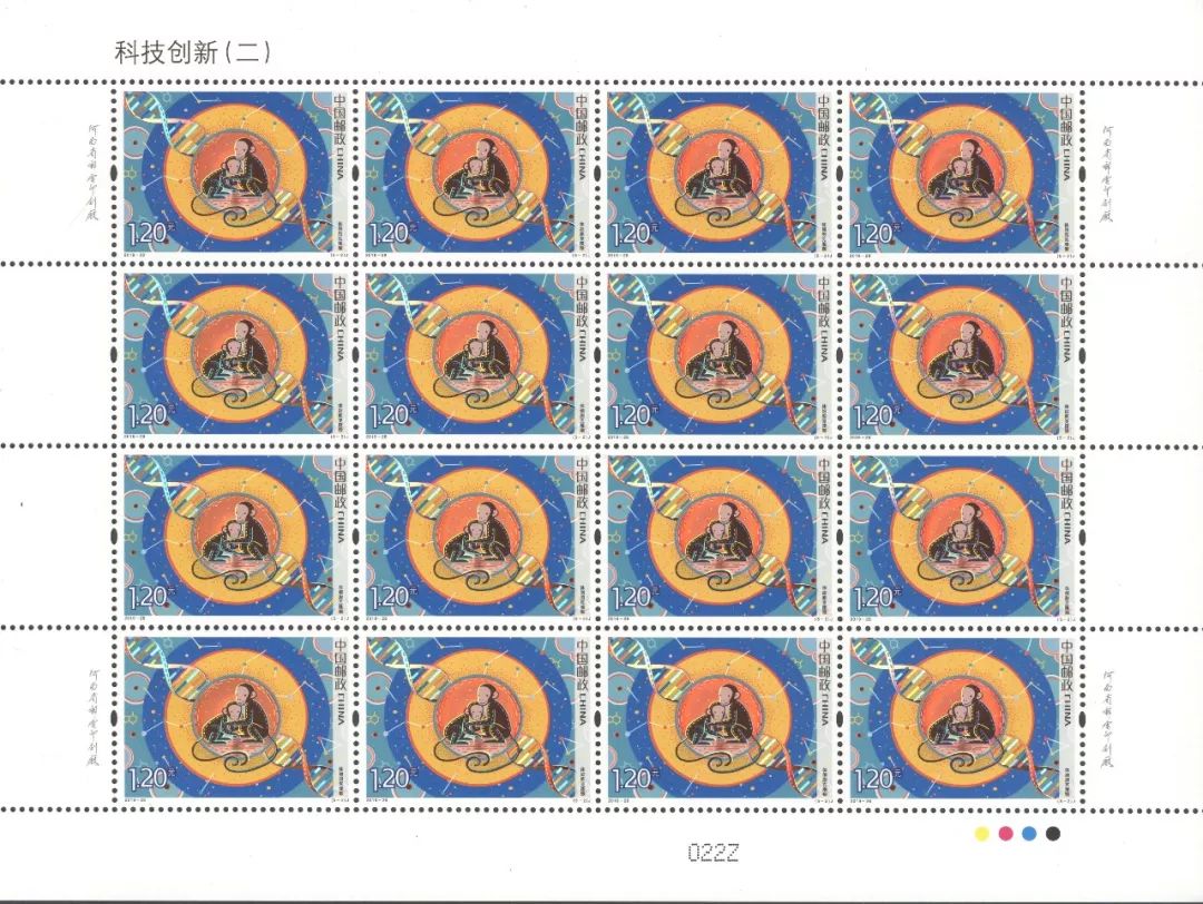 邮票印制采用彩色全息定位烫技术,技术含量高,防伪性能强,是众多印制方式中表现科技创新的不二选择。邮票首次在彩色全息定位烫图案上叠印印刷图案,是对加工精度的一次极大挑战,是中国邮票精益求精的又一力作。