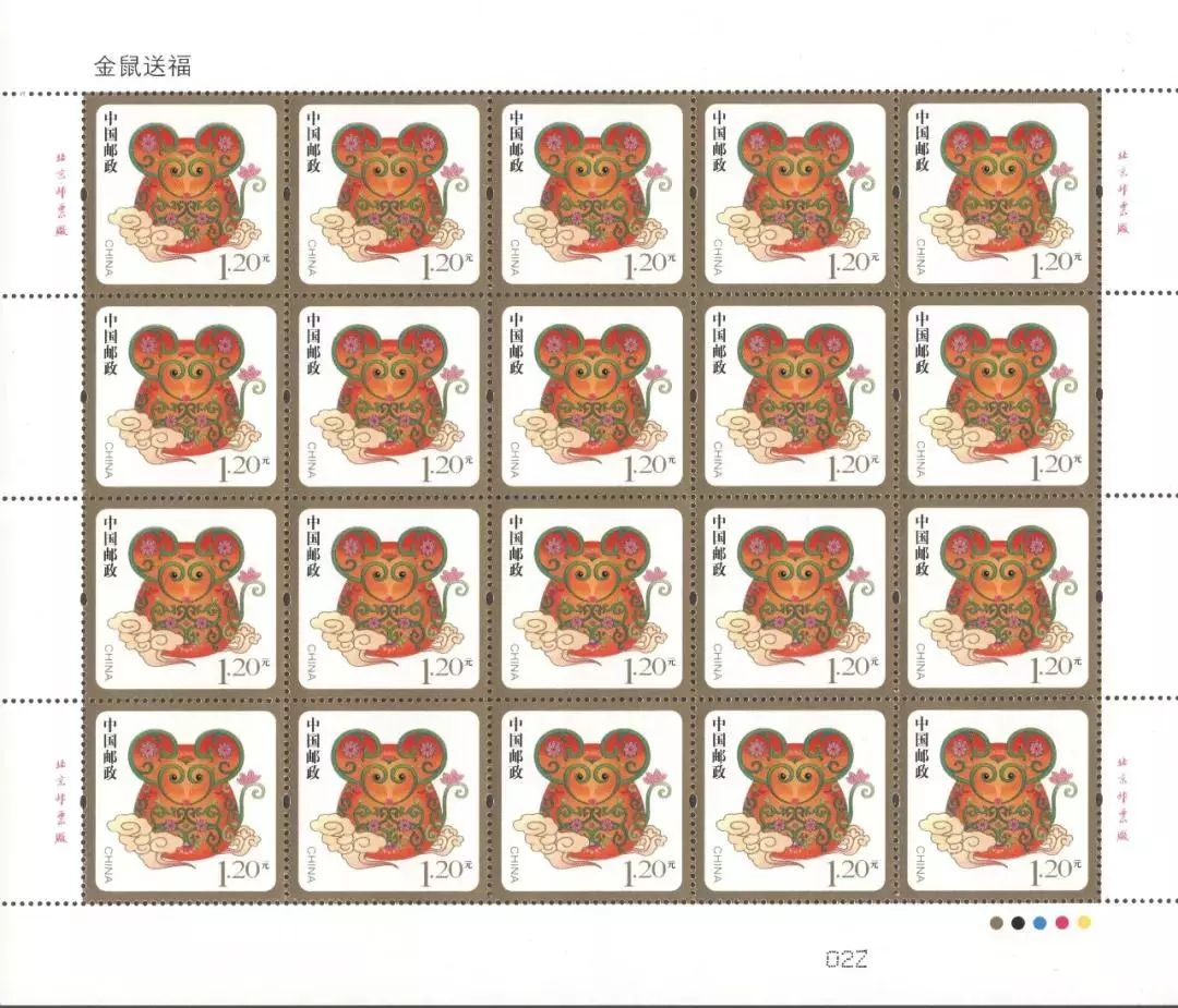 注:采用“金鼠送福”和“贺新禧”邮票印制小全张1枚,规格为115×190毫米,专用于2020年中国邮政贺年有奖产品(祝福卡型15元)。