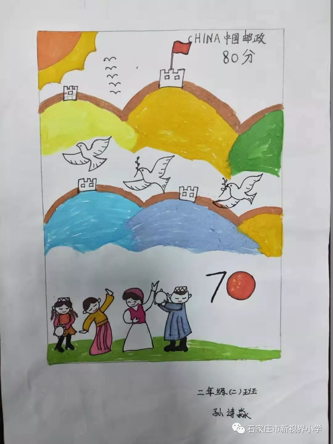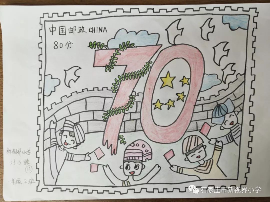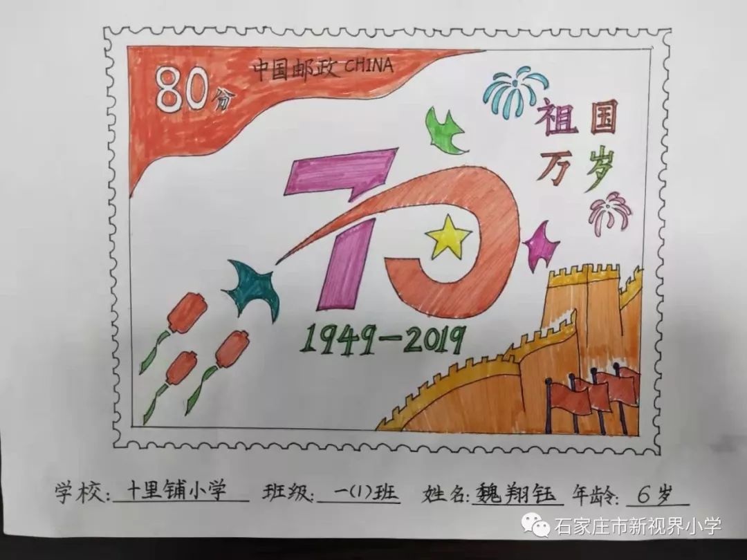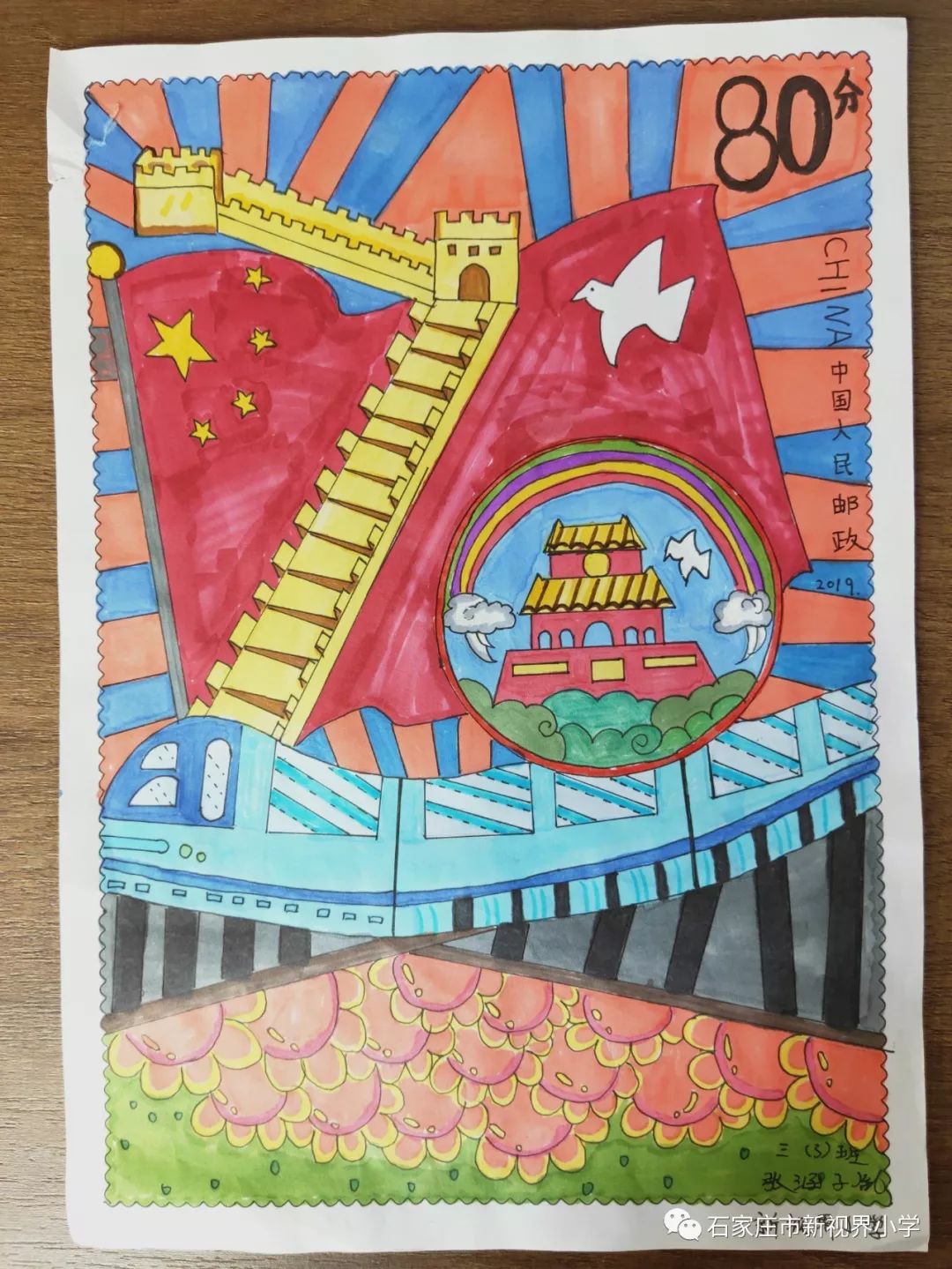 2019年是建国70周年,在10月份,石家庄市新视界学区组织新视界小学和十里铺小学两个校区的学生,通过书信和亲子邮票设计的形式,对学生进行了爱国主义教育,力求激发每一名学生的爱国热情。