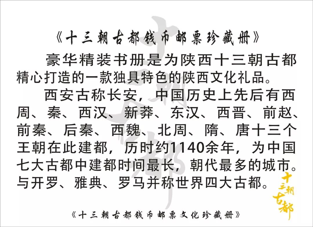 ◆商品名称:十三朝古都钱币邮票册艺术珍品鉴藏