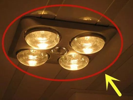 9、 浴霸要装修木龙骨上,用螺丝固定住。不能安装在吊顶上,不然时间一长,会造成吊顶孔四周下垂。