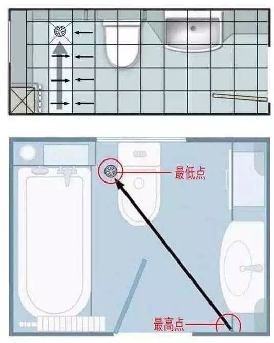 2、 卫生间、厨房、阳台都要在地漏处做好倾斜!首先要有一个整体的坡度,在地漏周围再做一个坡度!这样就减少了积水的可能性!