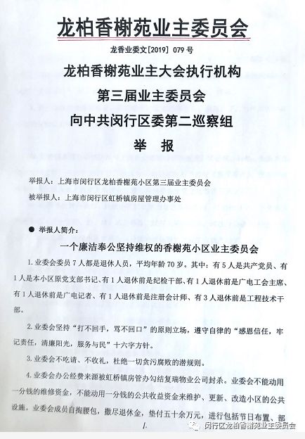 重磅消息(1):龙柏香榭苑业主大会法定执行机构第三届业委会实名举报